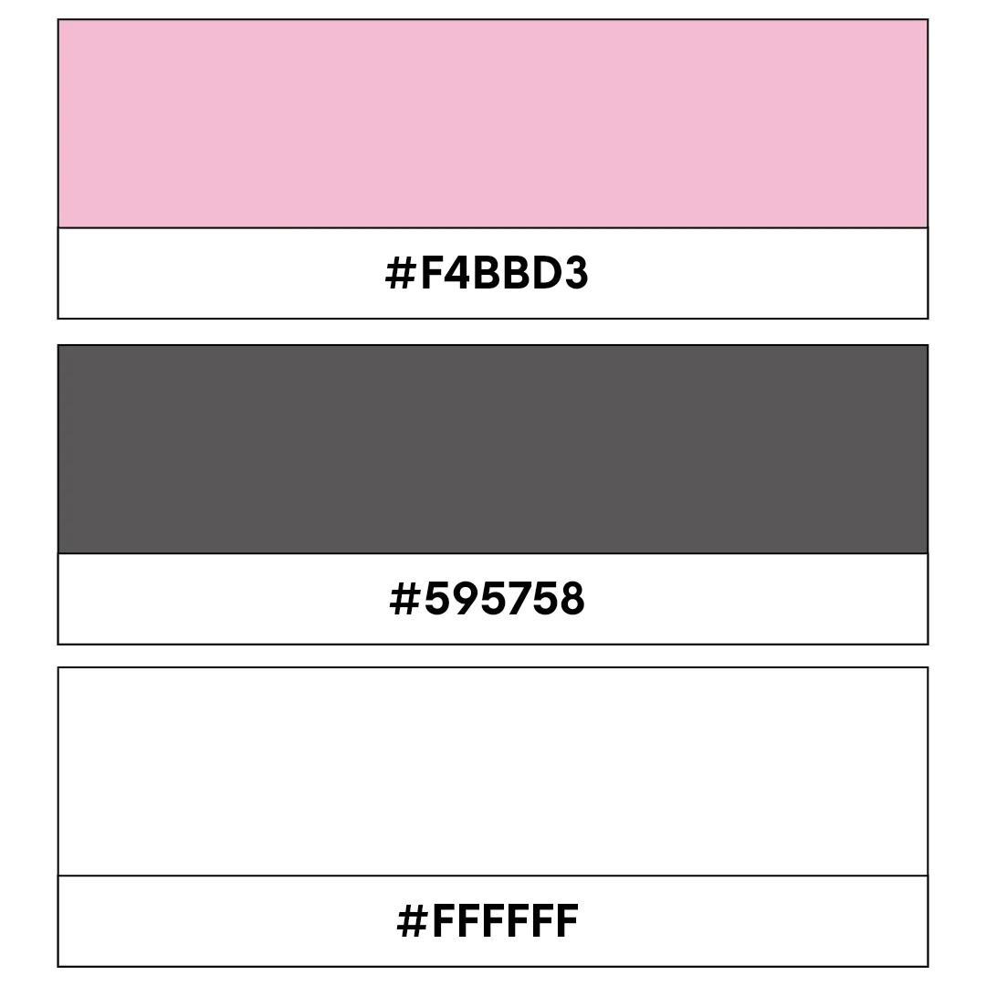 Pink code: #F4BBD3, Grey code: #595758, White code: #FFFFFF