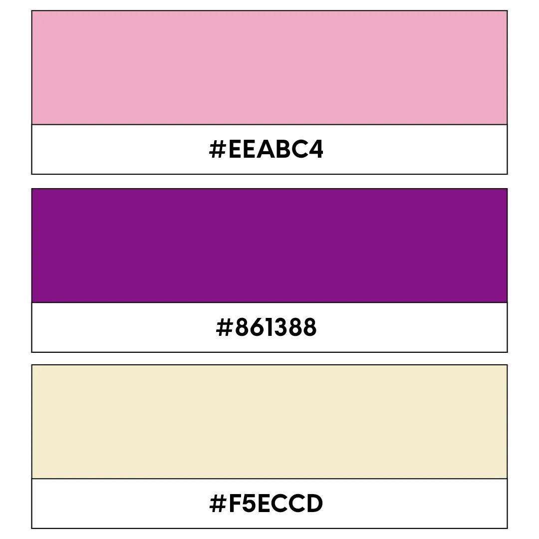 Pink code: #EEABC4, Purple code: #861388, Cream code: #F5ECCD