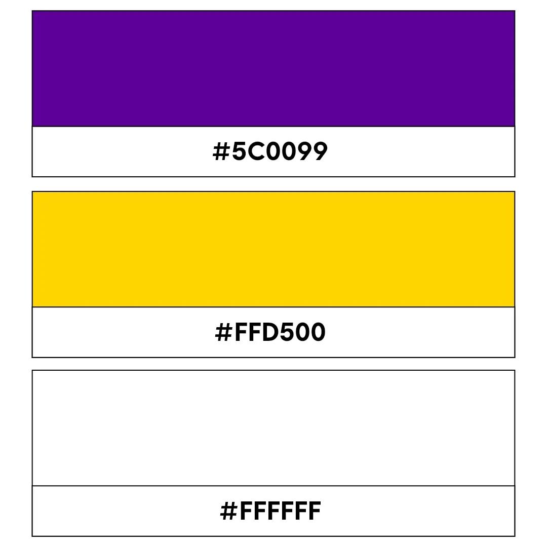 Purple code: #5C0099, Yellow code: #FFD500, White code: #FFFFFF