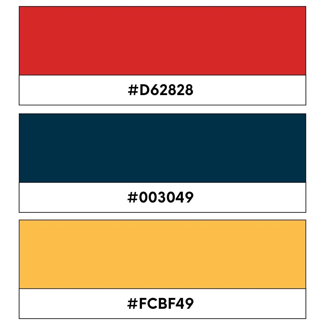 Red code: #D62828, Navy code: #003049, Yellow code: #FCBF49
