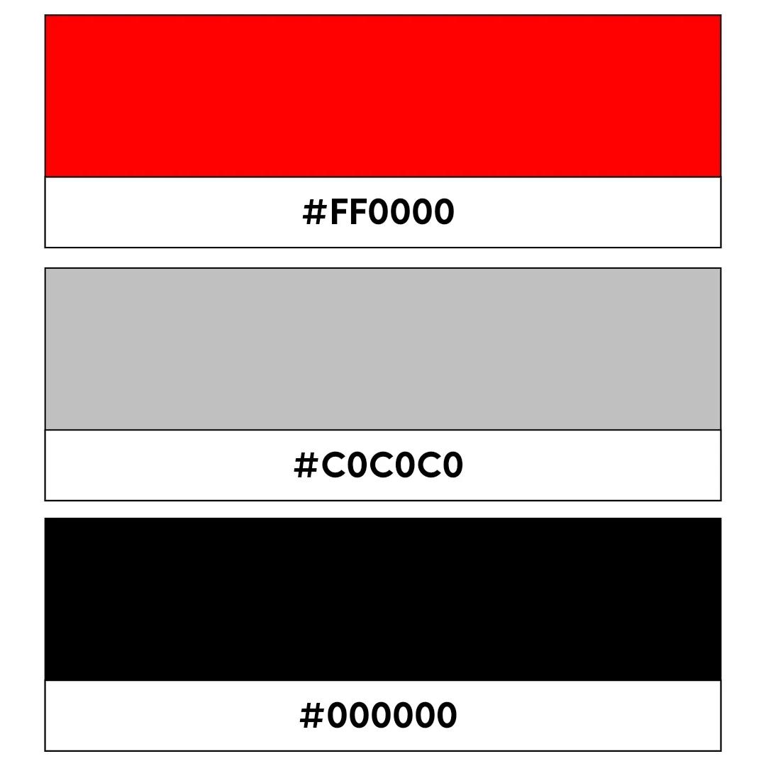 Red code: #FF0000, Silver code: #C0C0C0, Black code: #000000