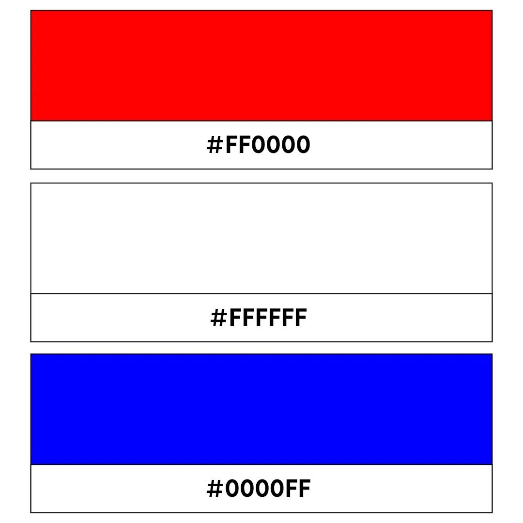 Red code: #FF0000, White code: #FFFFFF, Blue code: #0000FF