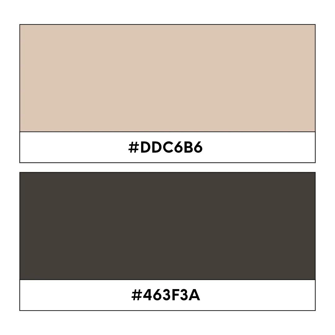 Taupe code: #DDC6B6, Charcoal grey code: #463F3A