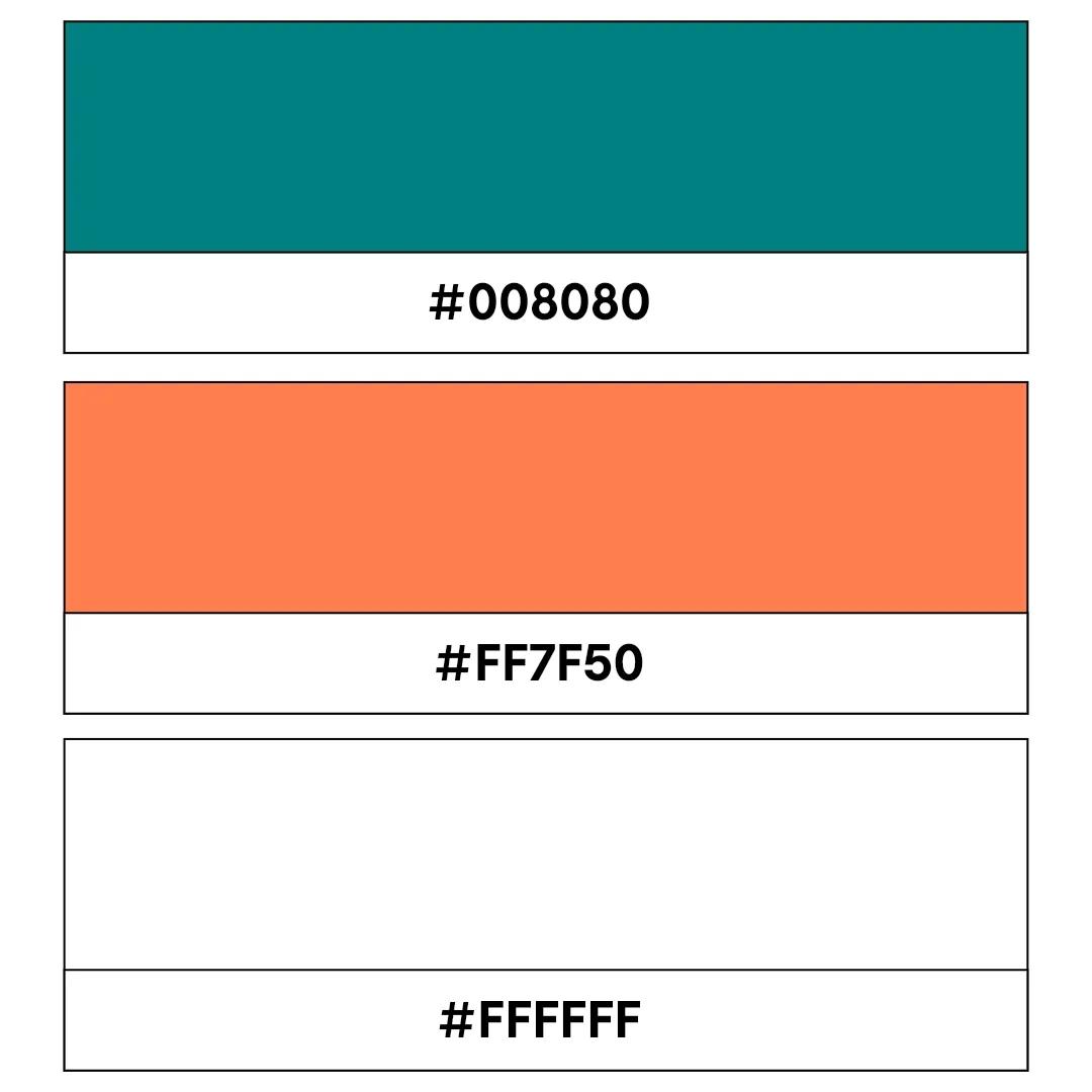 Teal code: #008080, Coral code: #FF7F50, White code: #FFFFFF