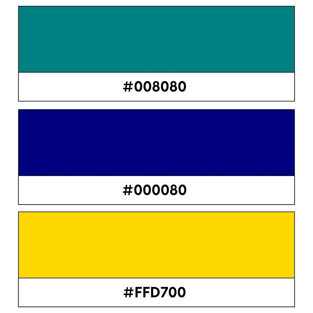 Teal code: #008080, Navy code: #000080, Gold code: #FFD700