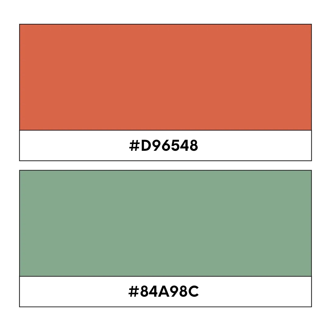 Terracotta code: #D96548, Sage green code: #84A98C
