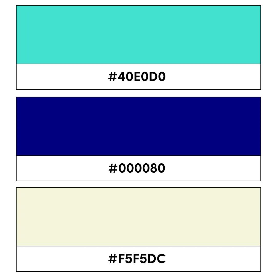 Turquoise code: #40E0D0, Navy code: #000080, Beige code: #F5F5DC