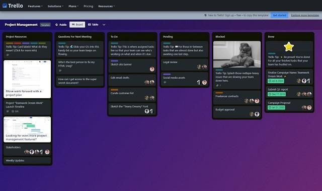 - Flexible boards with lists and cards to organize projects