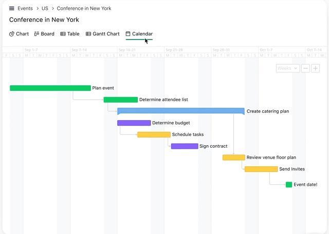 - Calendar and timeline views to plan projects