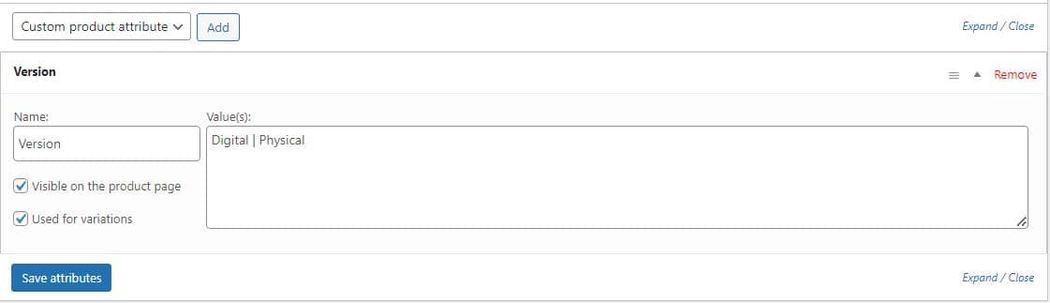With the attributes in place, go to the Variations section to create a variant. From there, you will be able to define the variant as a Downloadable product.