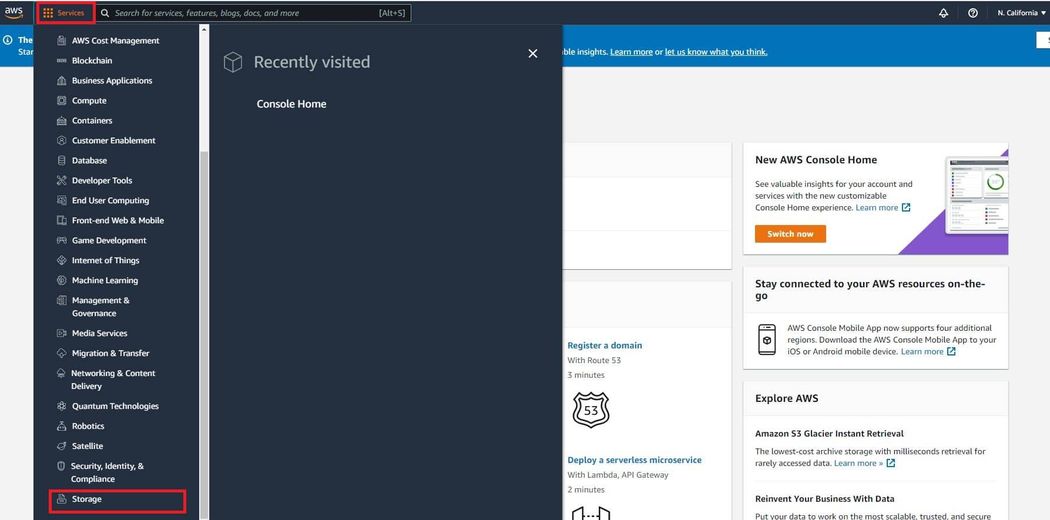 After you connect your WooCommerce store to Amazon S3, you can start uploading your files. From your AWS account, go to Services > Storage > S3.