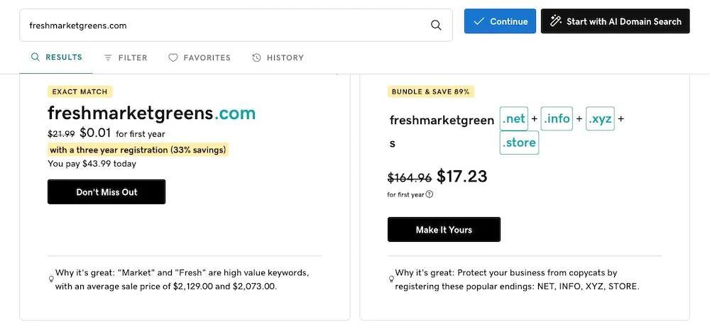 Cleverness isn’t enough to create a great domain name. It should also communicate what your business does without causing confusion. Descriptive names that also reflect your brand’s tone and personality can make you more memorable in search results.