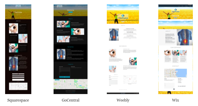 - Within each category — chiropractor website, restaurant website and real estate website — we made the four websites as similar as possible. Each site included the exact same text and images, as well as comparable features (e.g., image galleries, contact forms, maps).