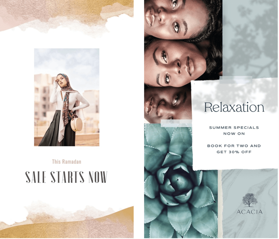 Find the layout collection that suits your brand best and customize it with your brand’s colors, fonts, logo, graphics, and images.
