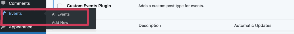 add_action('init', 'custom_events_post_type'); It went on to explain how to save the code to a unique file within an aptly named folder and then upload that to the /plugins folder. And, lastly, to activate the plugin.