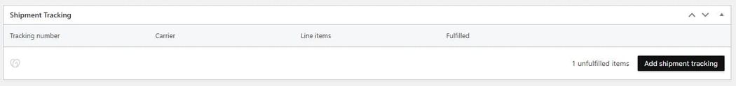 The final column of the dashboard is for Shipment tracking. This will display the tracking number, URL, and carrier for the delivery. You can apply this number to each order manually from the dashboard.
