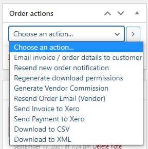 Additionally, you can perform actions for different WooCommerce extensions. For example, if you use WooCommerce Vendors to manage a multi-vendor marketplace you can use the order actions to generate a vendor commission.
