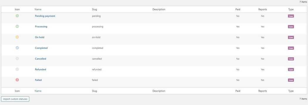 The latter works if you have already created custom order statuses using another plugin or code snippet. To import your prior statuses, click Import custom statuses.