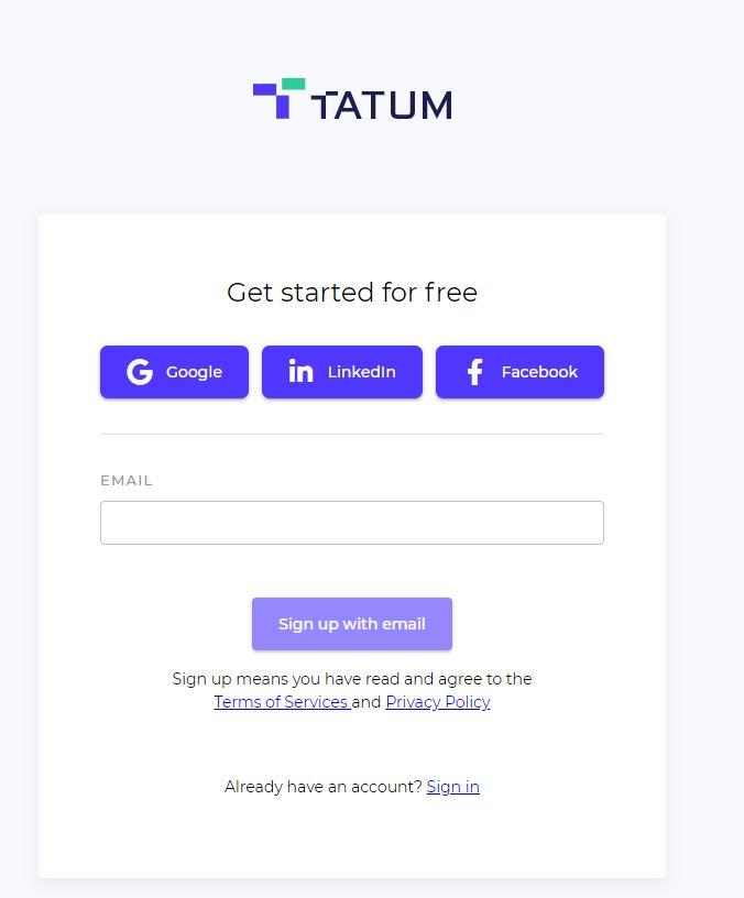 After you download the extension, you will go to the Tatum homepage to create your account and API key. From there, click Get API key.