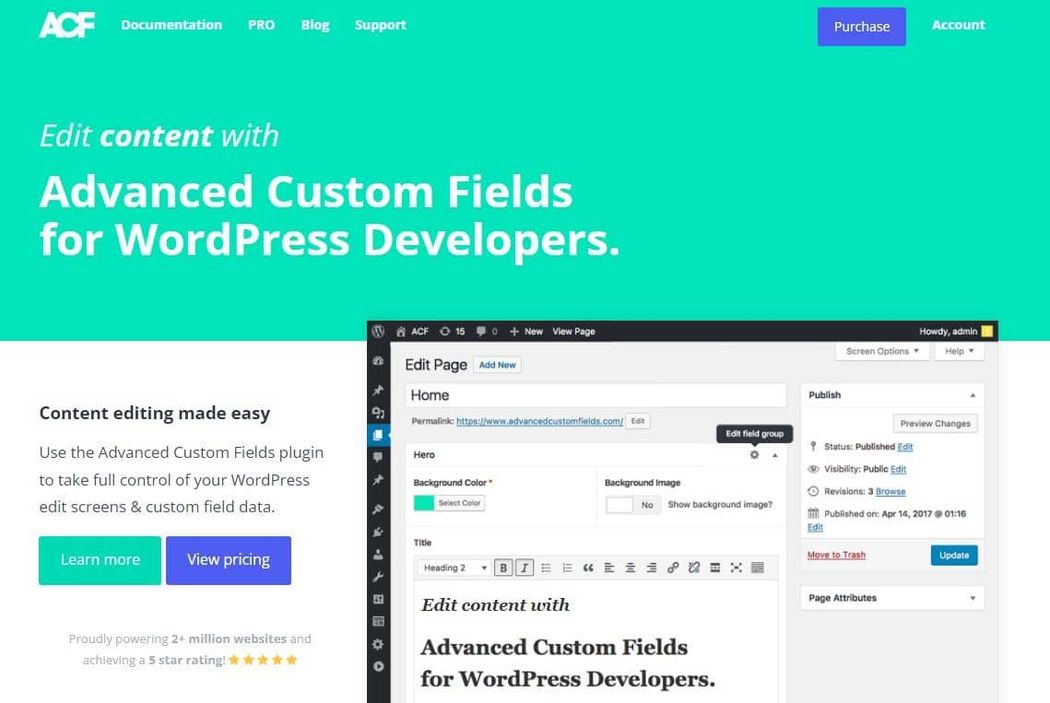 The ACF plugin allows you to develop the site faster and simplify the process of setting up everything in the admin panel. Its main advantage is that its custom fields have a variety of flexible settings, making their creation much faster and easier.