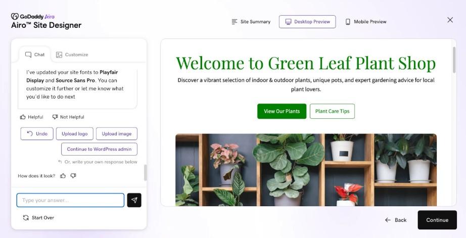 Airo Site Designer is available now for all GoDaddy Managed Hosting for WordPress plans. Simply choose “Airo Site Designer” when creating a new site to unlock the full experience.