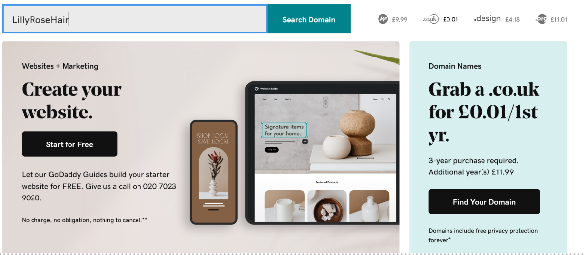 You might even find that an alternative to a .co.uk or .com fits your business even better. Using our Lilly Rose Hair example again, the owner of this business could have bought lillyrose.hair.