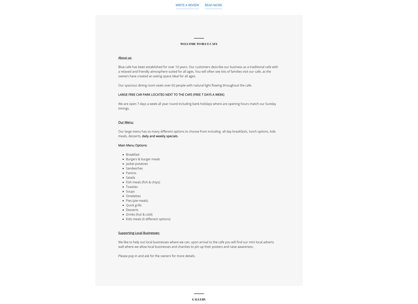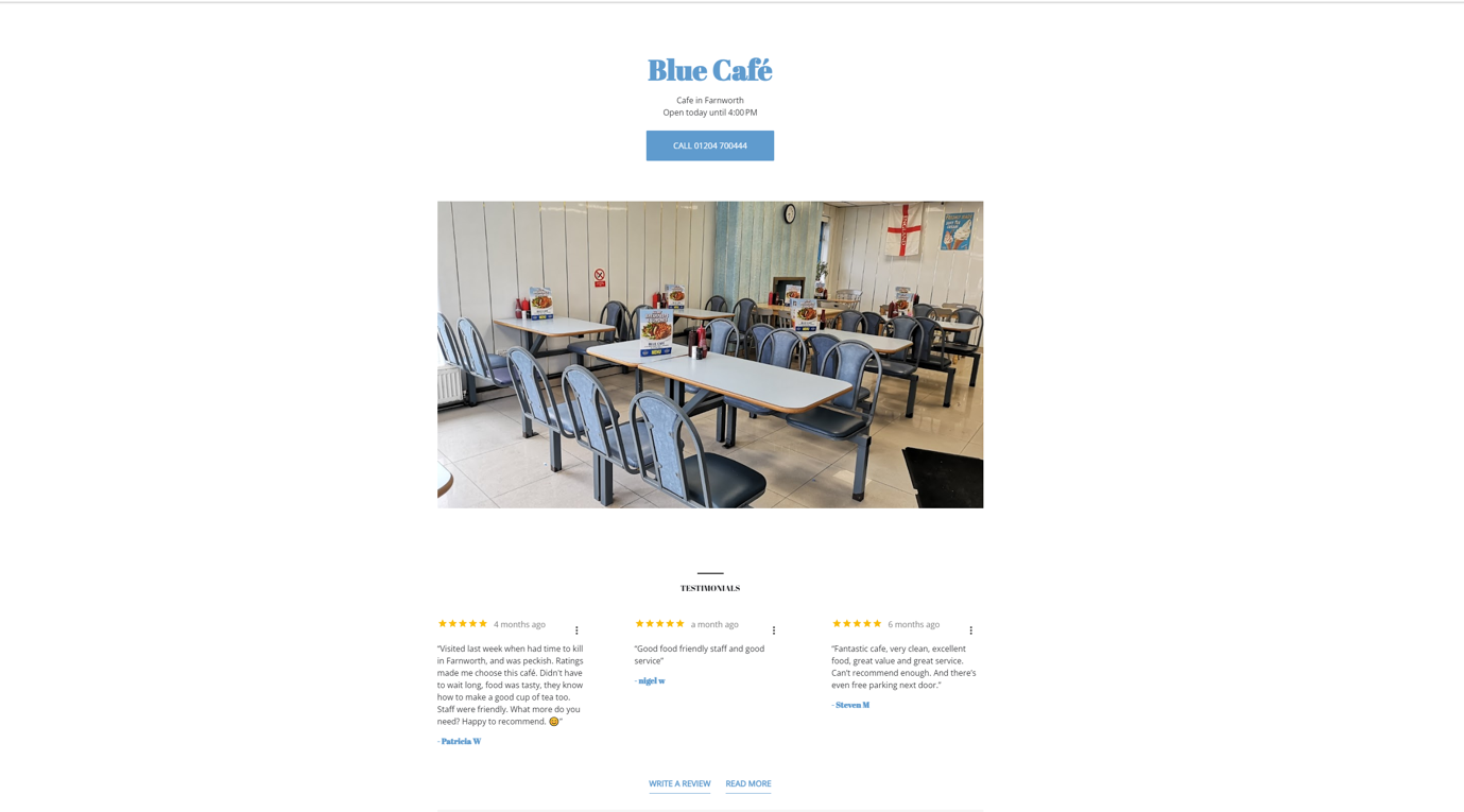 Overall, the sites were basic but smart, like this one for Blue Café in Farnworth: