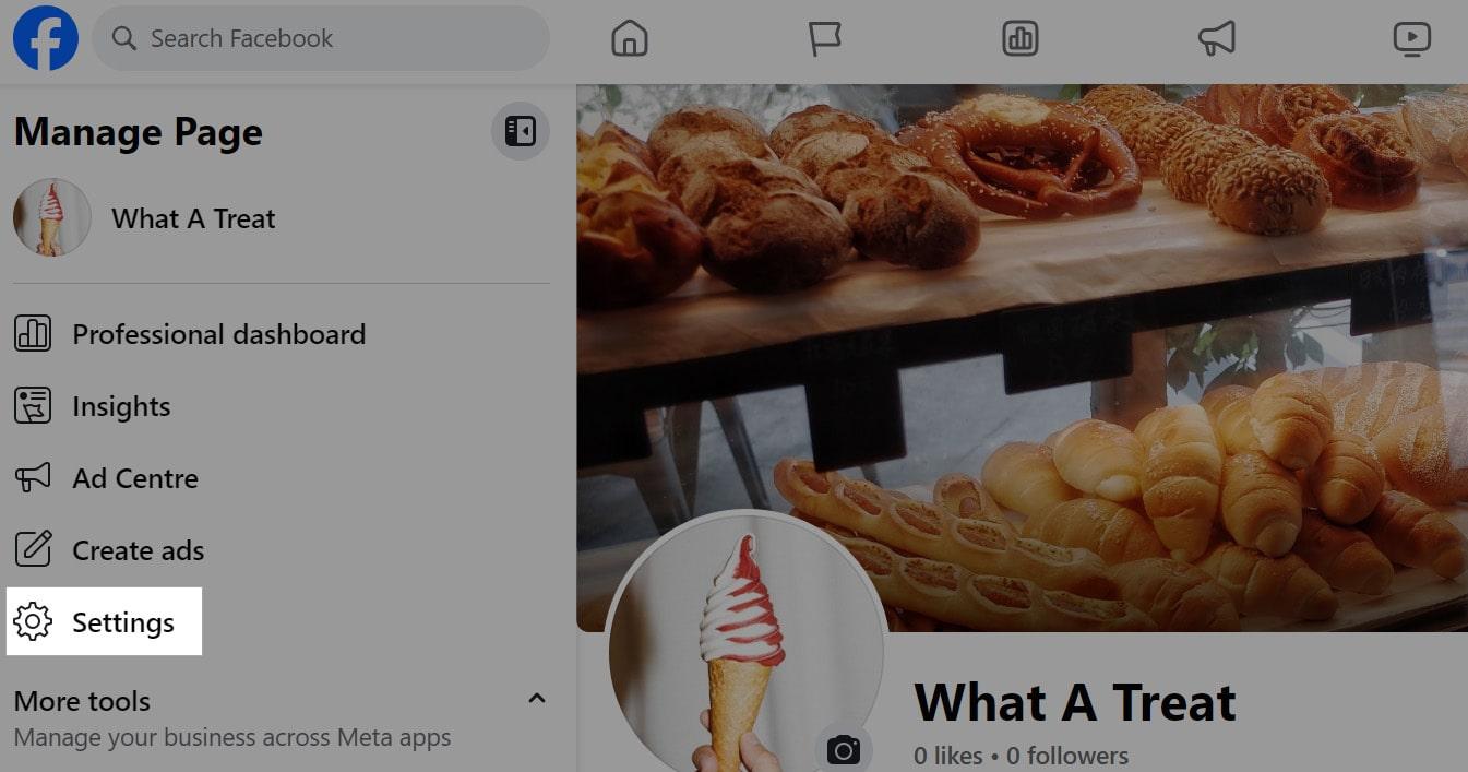 - From your business page, click Settings in the left-hand toolbar. You can also get there by clicking your business profile picture.
