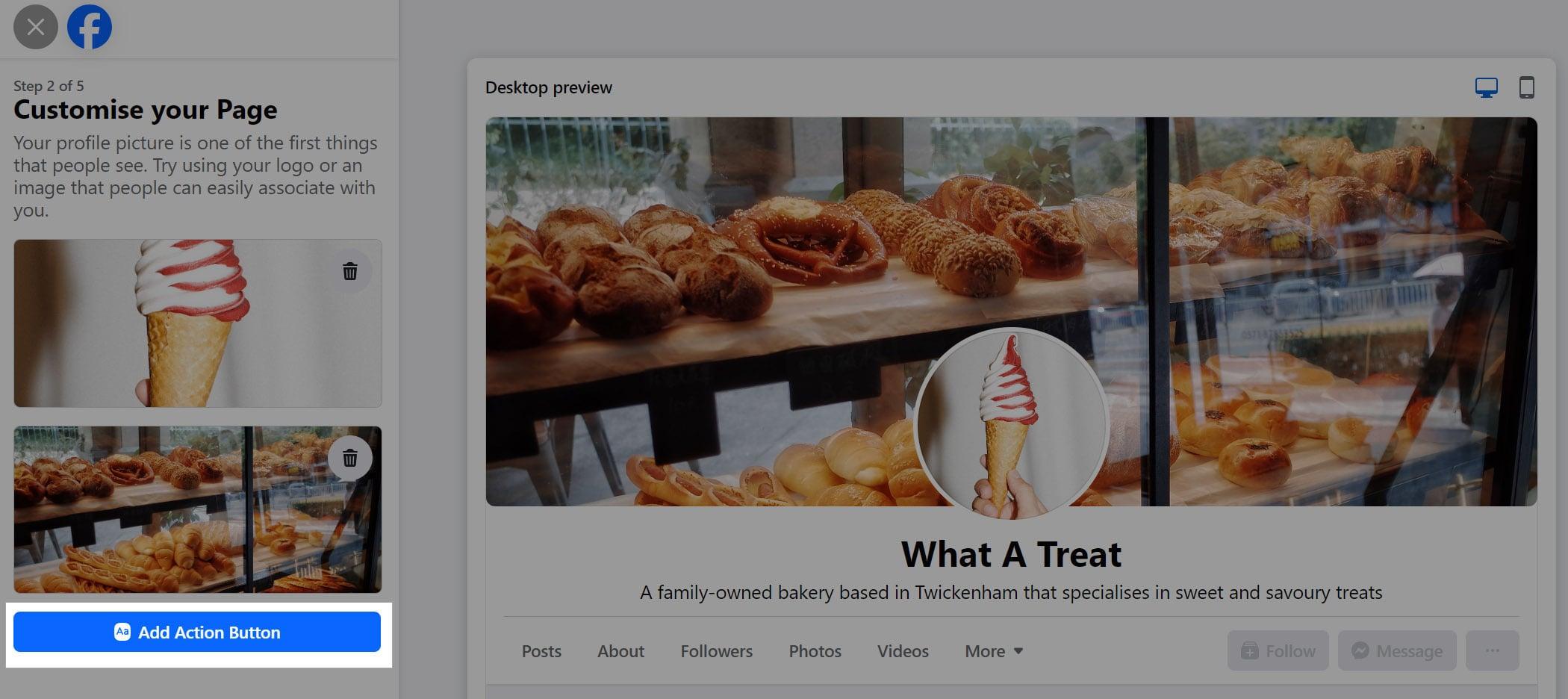 Customize your profile picture, cover photo and action button