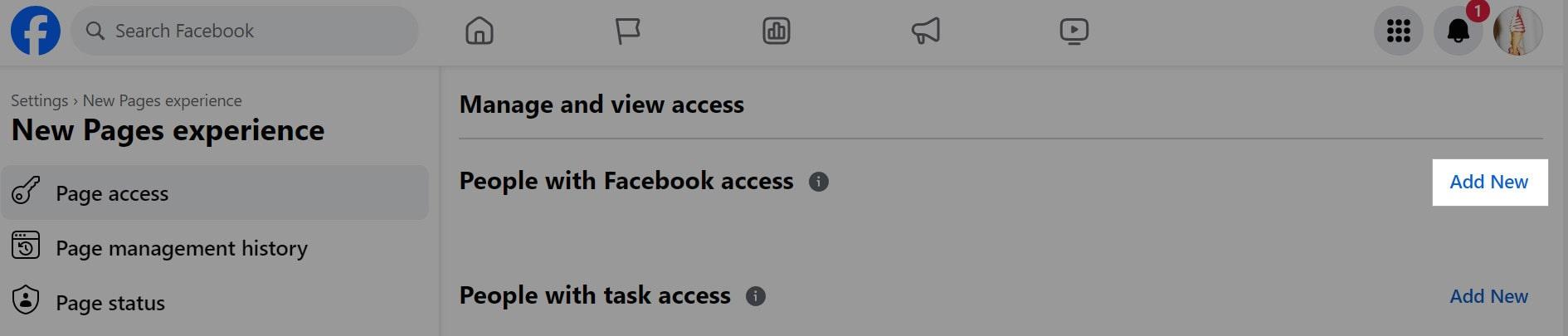 - Click Page access and then select Add New.