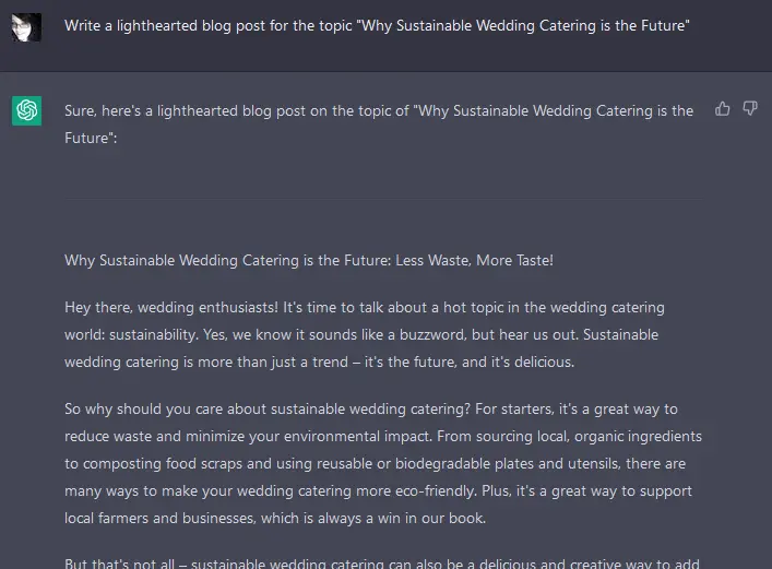 Does your small business tend to be more light-hearted and fun? Add those adjectives to your prompt to help the AI tool write content that fits your brand voice.