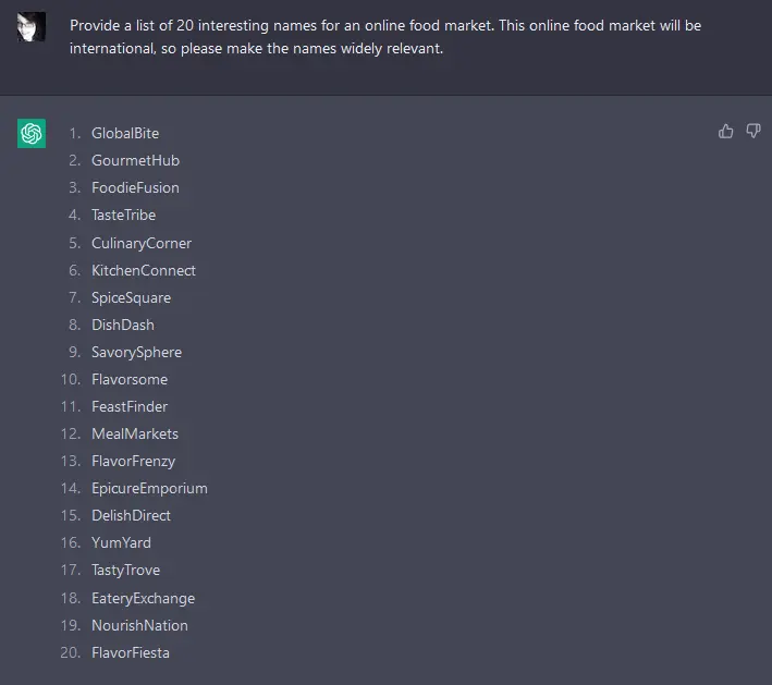 And, if you’re not completely happy with the recommendations, you can improve the generated names simply by refreshing your prompt and telling the AI chatbot what you’d prefer to see, ensuring the final name selection is well-suited for your business.