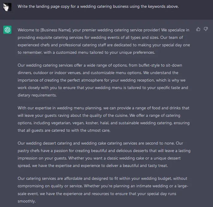 In addition to helping you brainstorm keywords, AI can help write the text for your website.