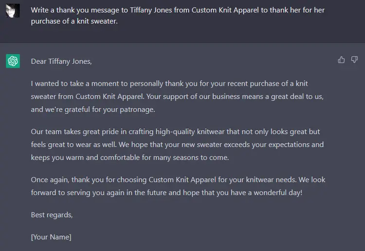 With AI, you can quickly craft personalized responses, such as thank-you emails to customers after they make a purchase or sign up for a service. This creates a sense of appreciation and helping to foster customer loyalty.